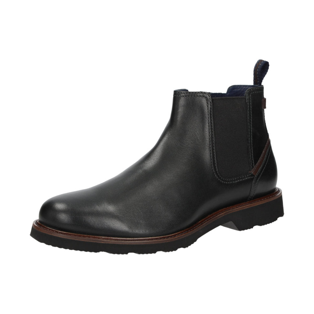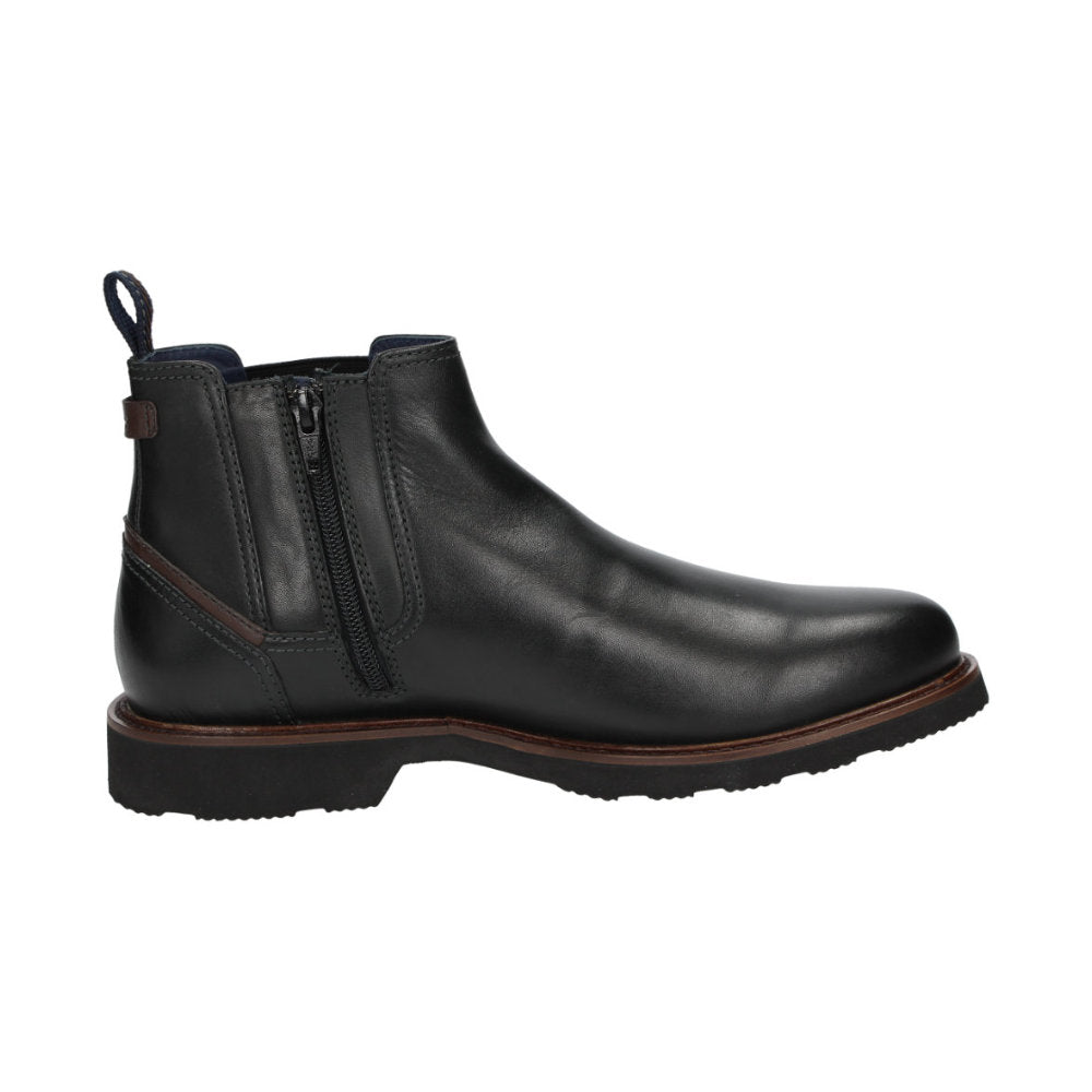 Sporty-looking style in a comfort width (H), perfect for long periods on your feet: Men's Chelsea boot made of calf leather with a sheen, this model features a wide elasticated gusset on one side and a zip on the other to ease putting on the boot. It has a leather-covered footbed that can be replaced with a bespoke insole. The boot is lined with leather and a functional stretch fabric at the forefoot. The cleated rubber sole ensures good traction. Perfect for anyone who values comfort.