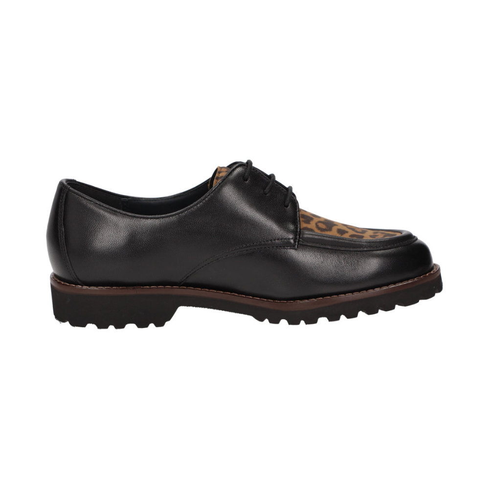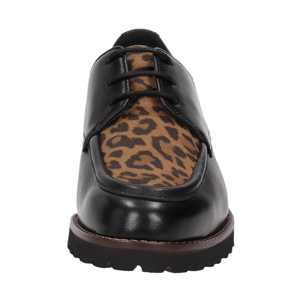 This lace-up shoe impresses with its glove-soft leather, which gently hugs the foot and provides a comfortable wearing experience. The eye-catching leopard print design gives the shoe a fashionable touch, making it a stylish companion for your everyday life. The rubber sole ensures flexibility and secure grip with every step.